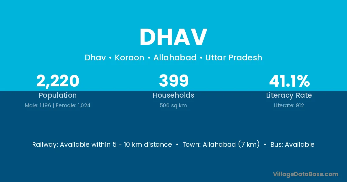Allahabad (7 km) is the nearest town to Dhav village for major economic activities and is located approximately 7 km away.
