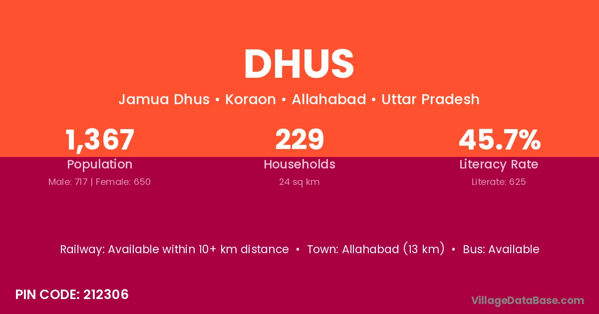 Allahabad (13 km) is the nearest town to Dhus village for major economic activities and is located approximately 13 km away.
