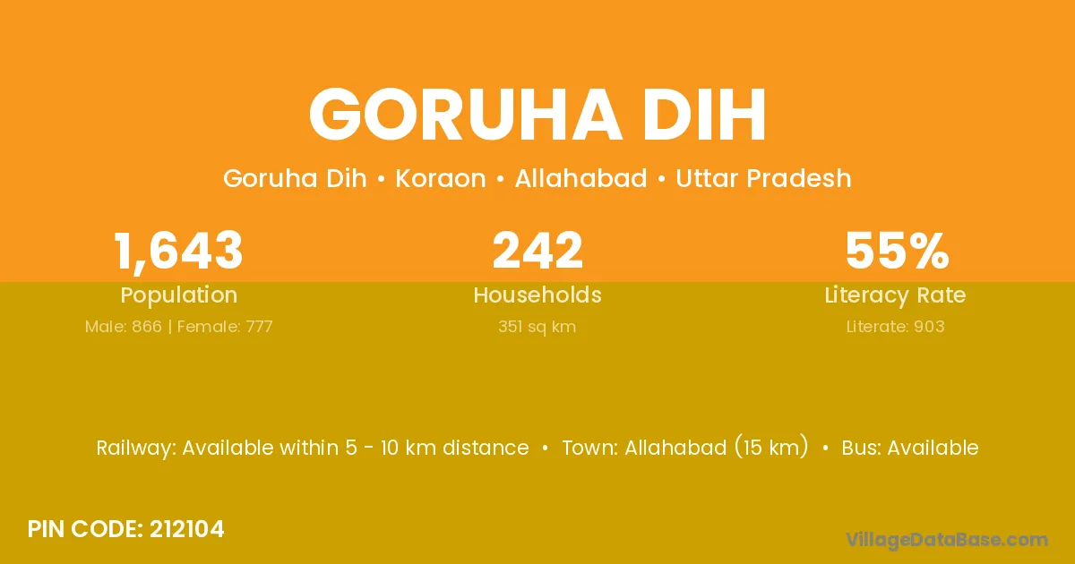 Allahabad (15 km) is the nearest town to Goruha Dih village for major economic activities and is located approximately 15 km away.