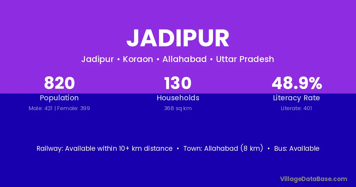 Allahabad (8 km) is the nearest town to Jadipur village for major economic activities and is located approximately 8 km away.