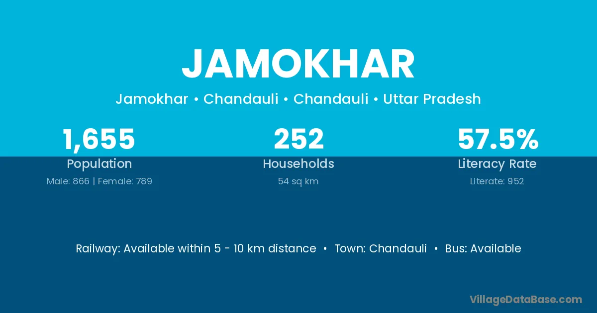 The literacy rate of Jamokhar village is 45.16%. Male literacy stands at 51.90% and female literacy at 38.16%.