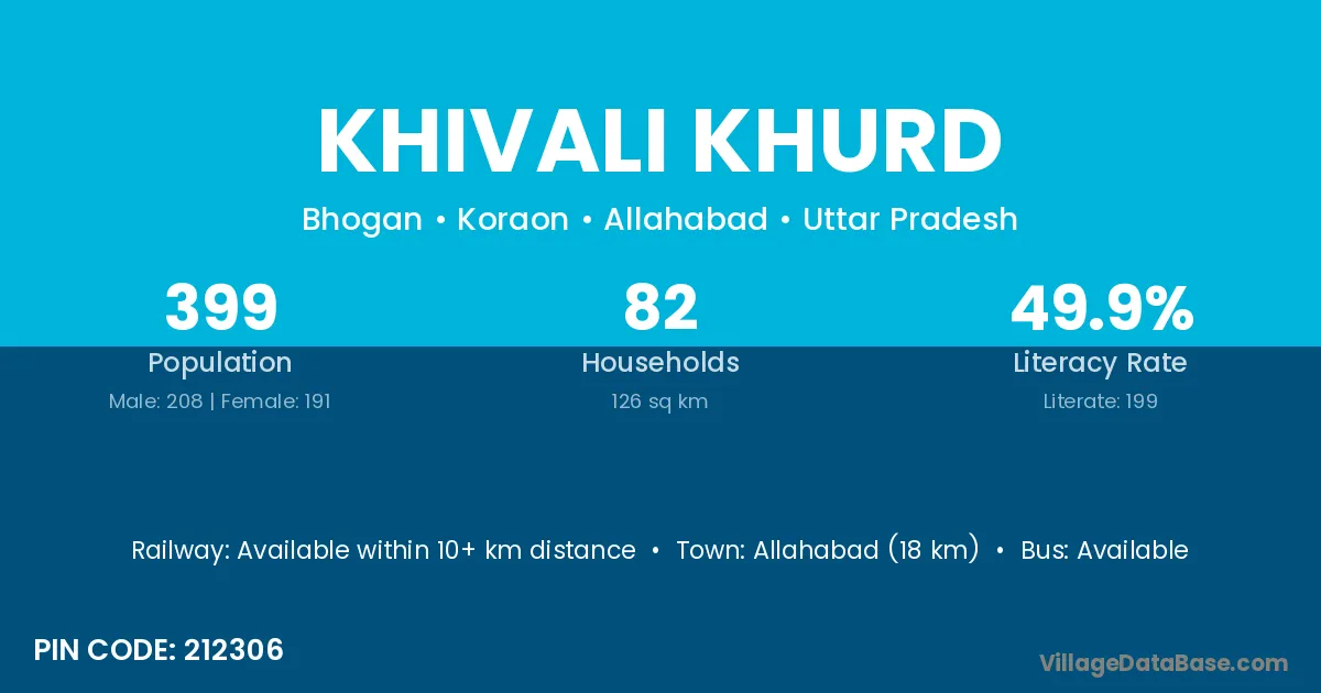 Allahabad (18 km) is the nearest town to Khivali Khurd village for major economic activities and is located approximately 18 km away.