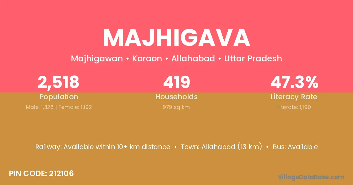 Allahabad (13 km) is the nearest town to Majhigava village for major economic activities and is located approximately 13 km away.