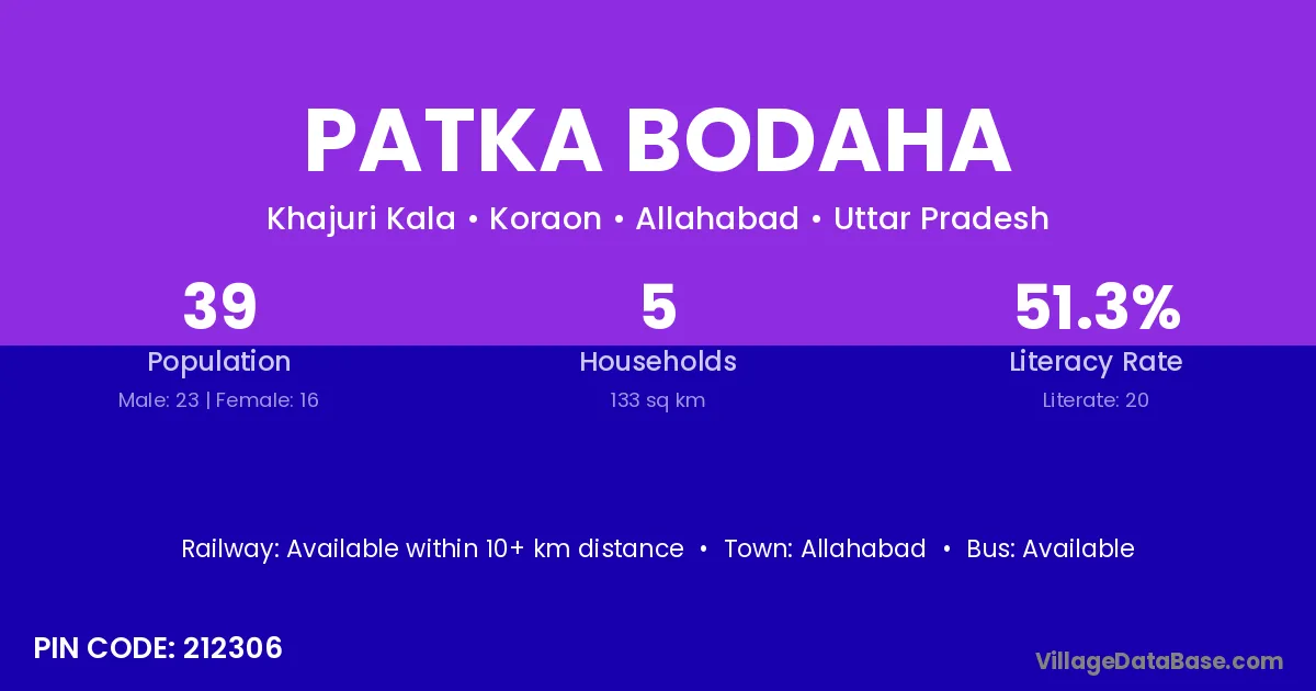 Allahabad is the nearest town to Patka Bodaha village for major economic activities
