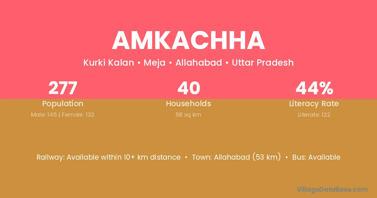 Allahabad (53 km) is the nearest town to Amkachha village for major economic activities and is located approximately 53 km away.