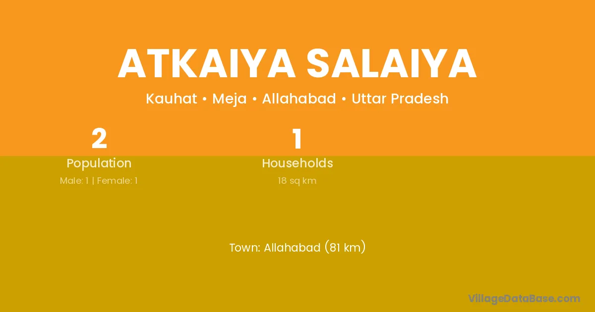 Atkaiya Salaiya village has a total population of 2 people, of which 1 are males and 1 are females.