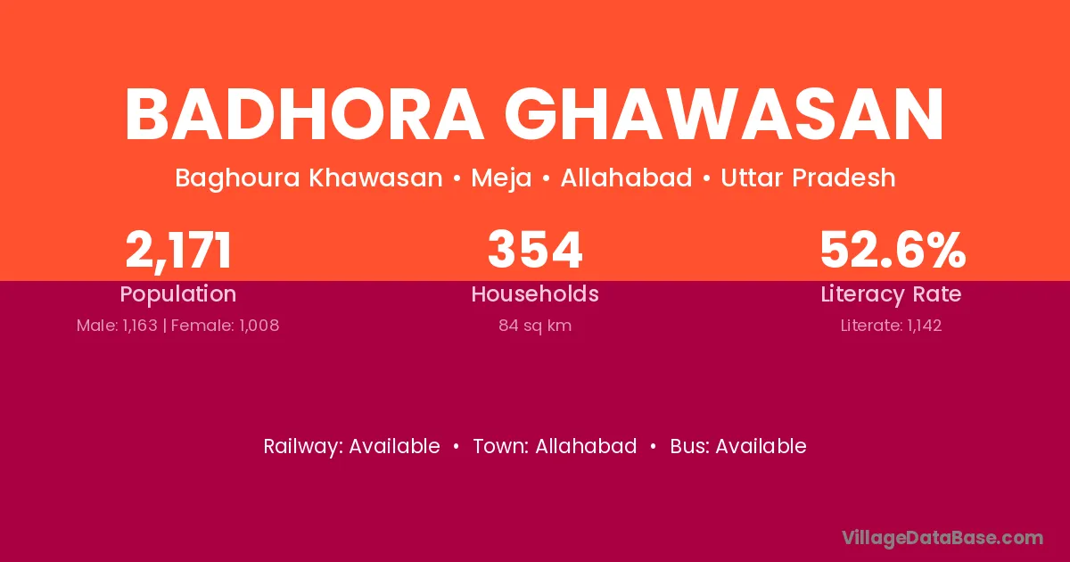 Allahabad is the nearest town to Badhora Ghawasan village for major economic activities