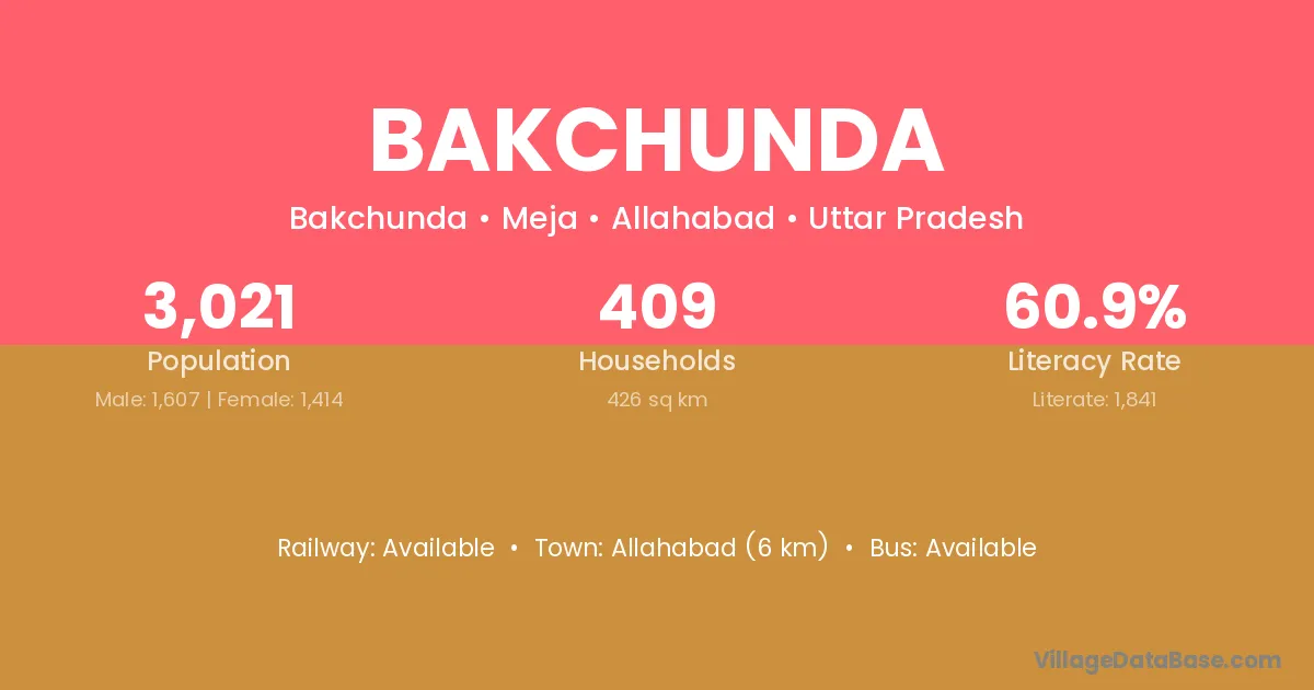 Allahabad (6 km) is the nearest town to Bakchunda village for major economic activities and is located approximately 6 km away.