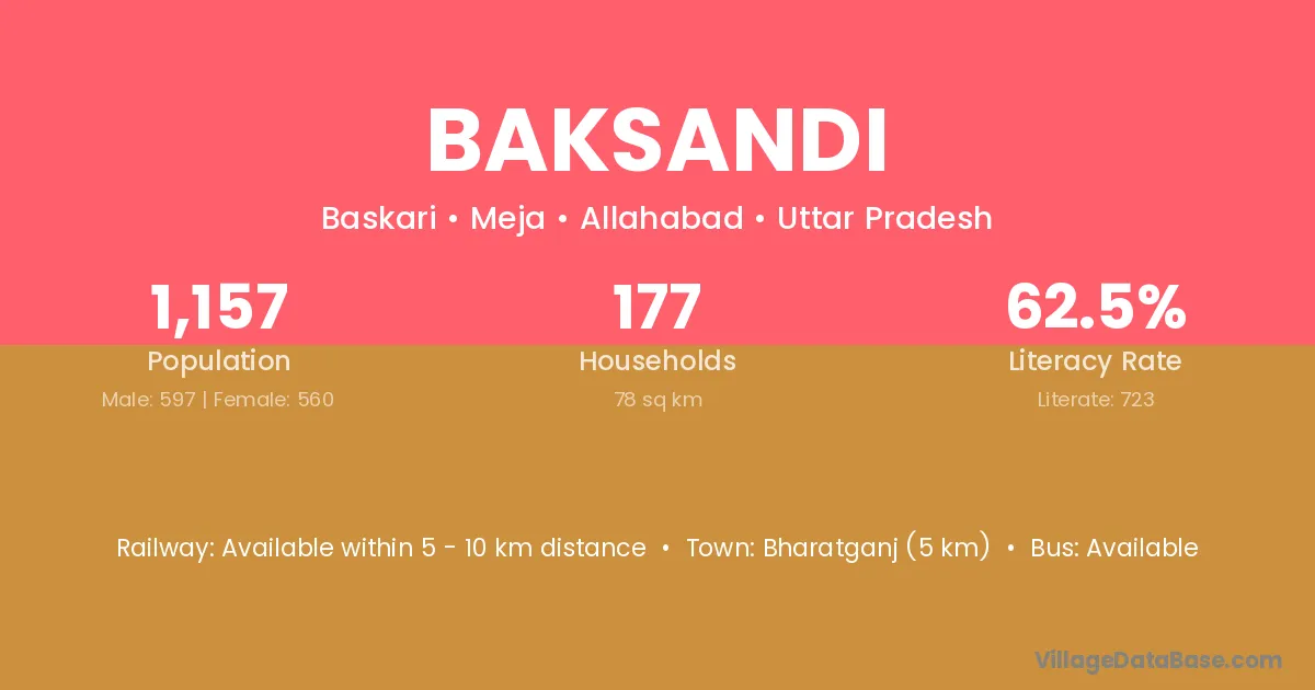 Bharatganj (5 km) is the nearest town to Baksandi village for major economic activities and is located approximately 5 km away.