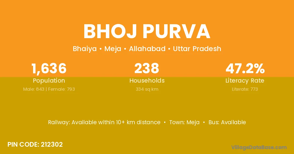 Meja is the nearest town to Bhoj Purva village for major economic activities