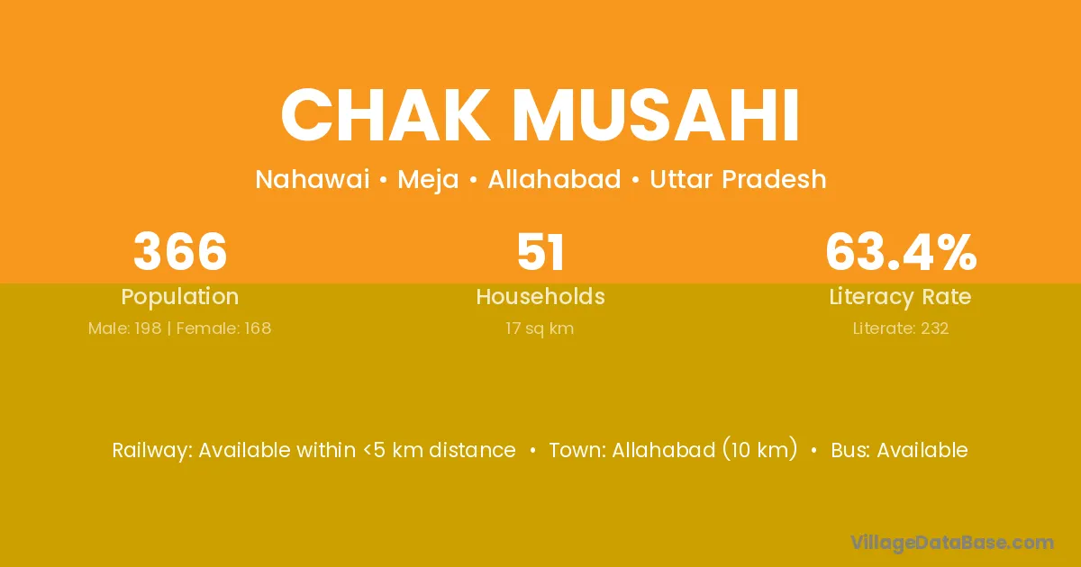 Allahabad (10 km) is the nearest town to Chak Musahi village for major economic activities and is located approximately 10 km away.