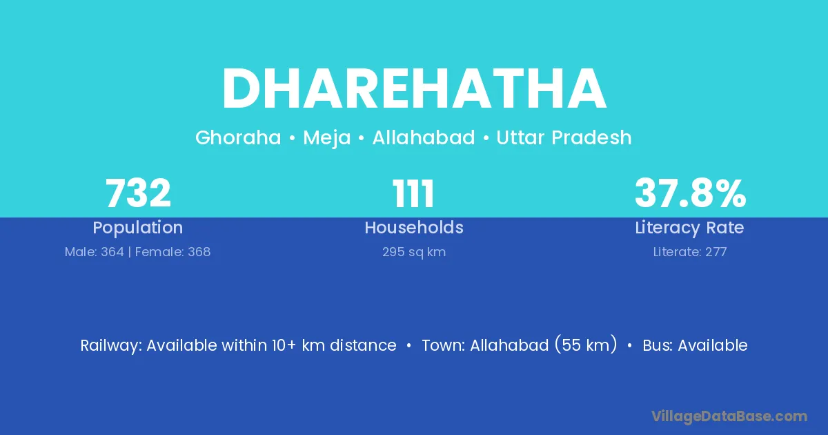 Dharehatha village has a total population of 732 people, of which 364 are males and 368 are females.