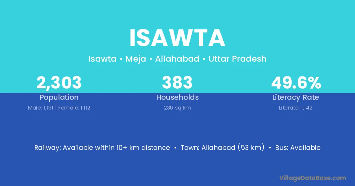 Allahabad (53 km) is the nearest town to Isawta village for major economic activities and is located approximately 53 km away.