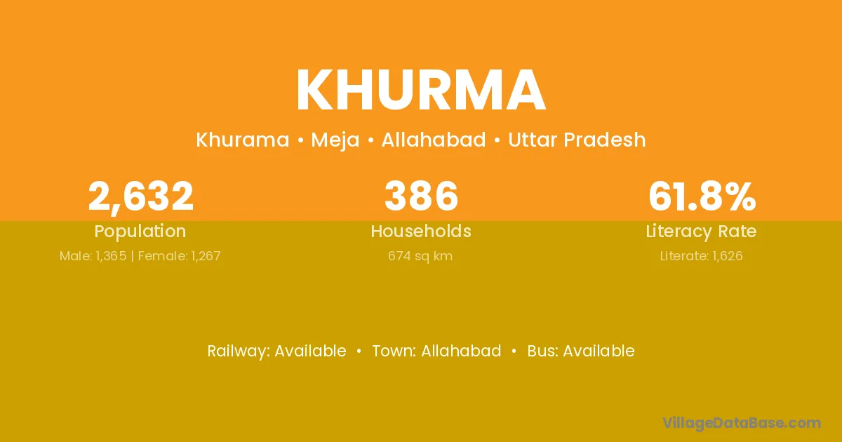Khurma village has a total population of 2,632 people, of which 1,365 are males and 1,267 are females.