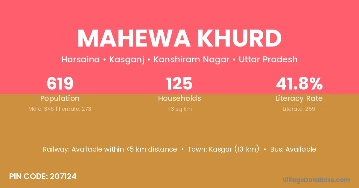 Allahabad (54 km) is the nearest town to Mahewa Khurd village for major economic activities and is located approximately 54 km away.
