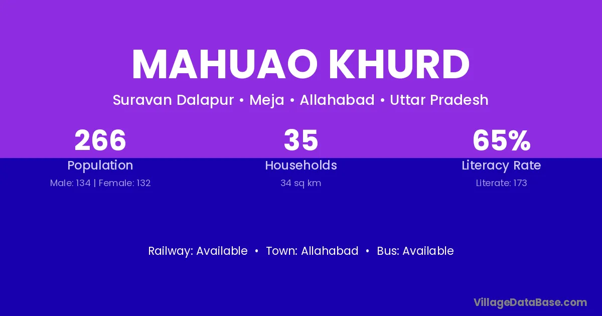 Mahuao Khurd village has a total population of 266 people, of which 134 are males and 132 are females.