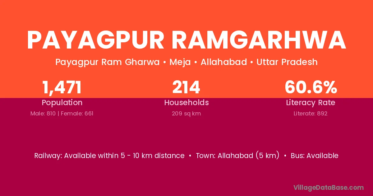 Allahabad (5 km) is the nearest town to Payagpur Ramgarhwa village for major economic activities and is located approximately 5 km away.