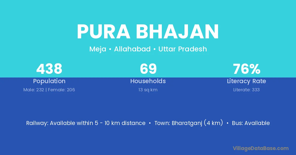 Bharatganj (4 km) is the nearest town to Pura Bhajan village for major economic activities and is located approximately 4 km away.