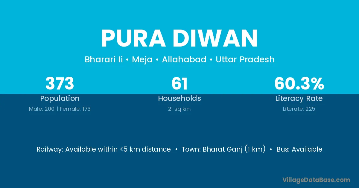 Bharat Ganj (1 km) is the nearest town to Pura Diwan village for major economic activities and is located approximately 1 km away.
