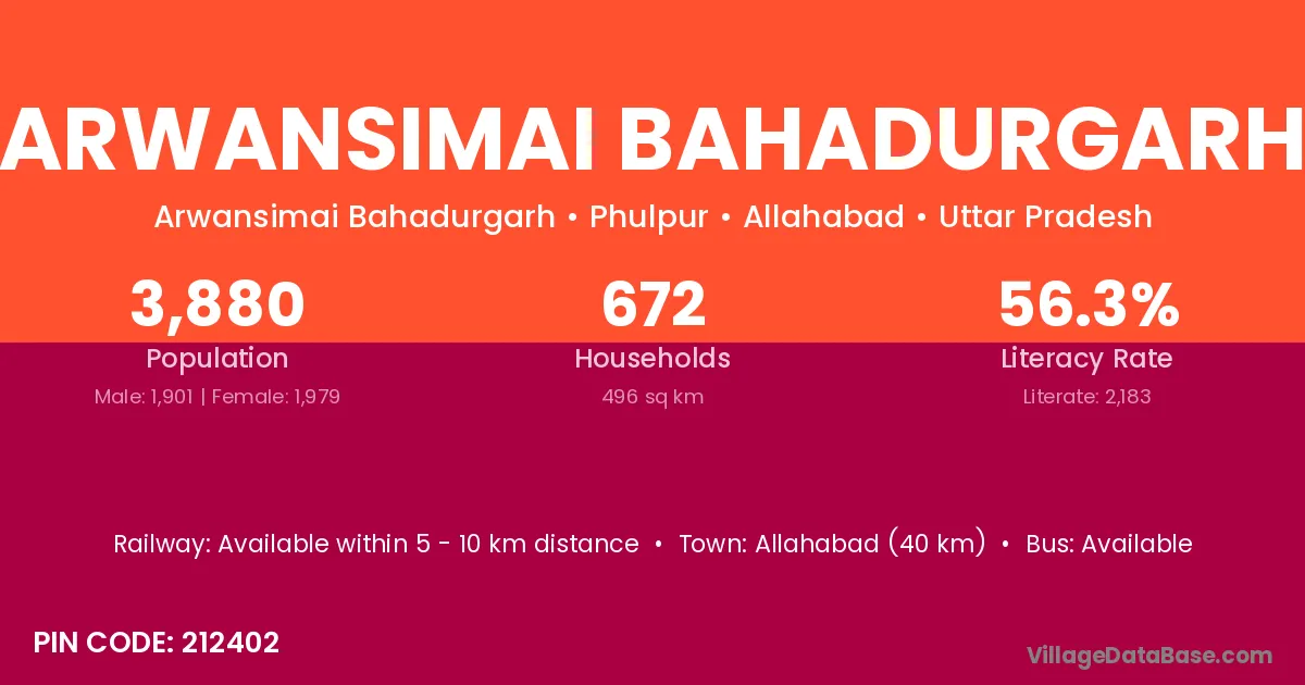 Allahabad (40 km) is the nearest town to Arwansimai Bahadurgarh village for major economic activities and is located approximately 40 km away.