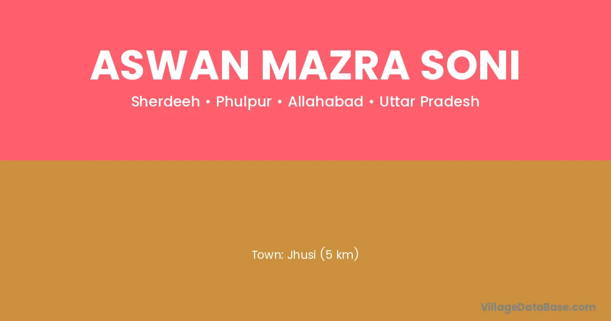 Jhusi (5 km) is the nearest town to Aswan Mazra Soni village for major economic activities and is located approximately 5 km away.