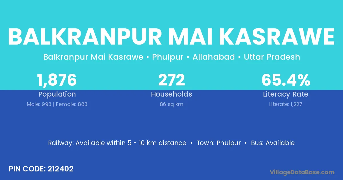 Phulpur is the nearest town to Balkranpur Mai Kasrawe village for major economic activities