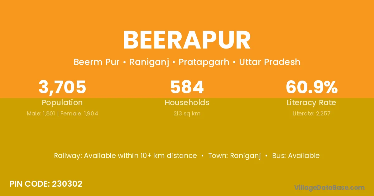 Allahabad (16 km) is the nearest town to Beerapur village for major economic activities and is located approximately 16 km away.