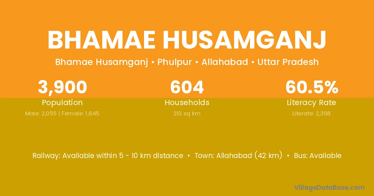 Allahabad (42 km) is the nearest town to Bhamae Husamganj village for major economic activities and is located approximately 42 km away.