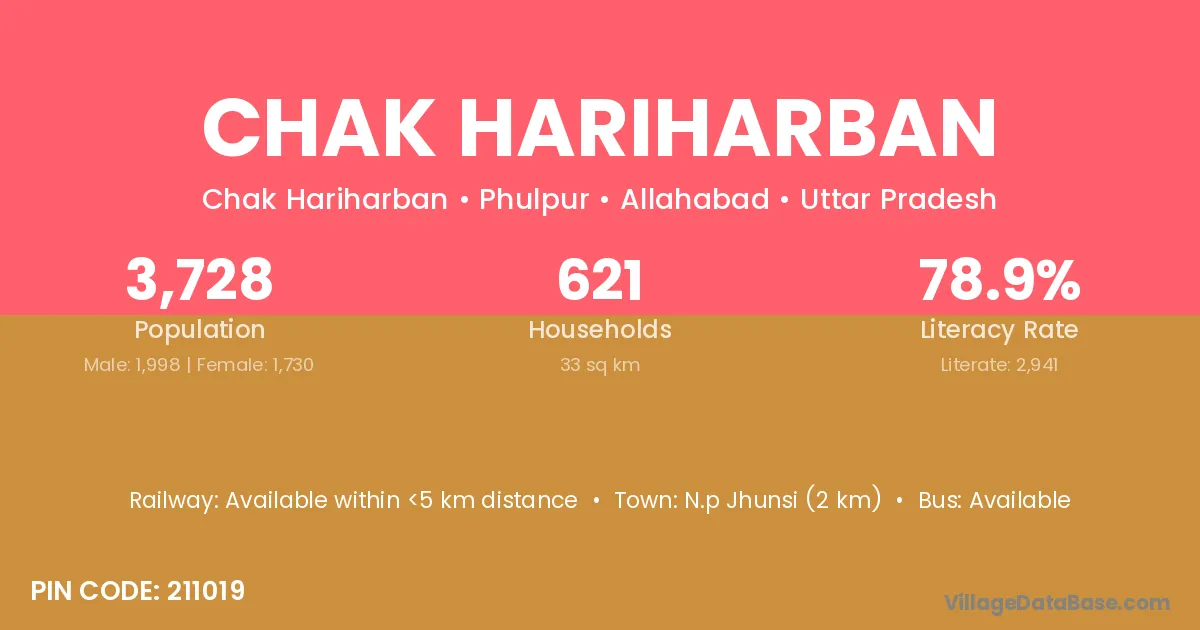 N.p Jhunsi (2 km) is the nearest town to Chak Hariharban village for major economic activities and is located approximately 2 km away.