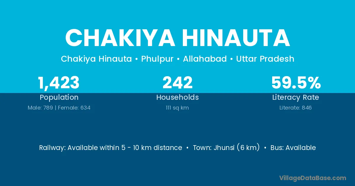 Jhunsi (6 km) is the nearest town to Chakiya Hinauta village for major economic activities and is located approximately 6 km away.