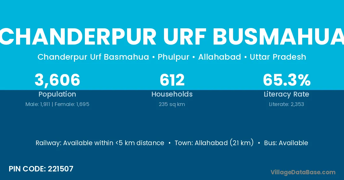 Allahabad (21 km) is the nearest town to Chanderpur Urf Busmahua village for major economic activities and is located approximately 21 km away.