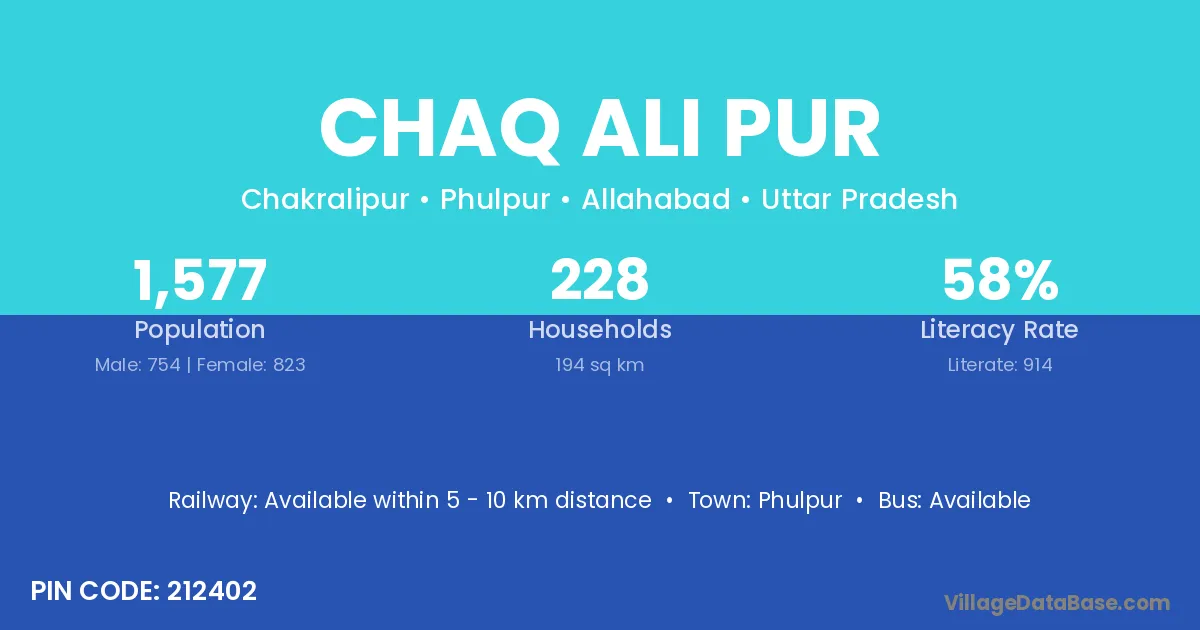 Phulpur is the nearest town to Chaq Ali Pur village for major economic activities