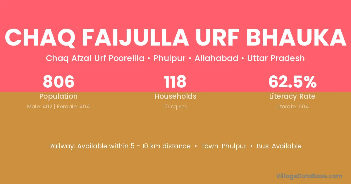 Chaq Faijulla Urf Bhauka village has a total population of 806 people, of which 402 are males and 404 are females.