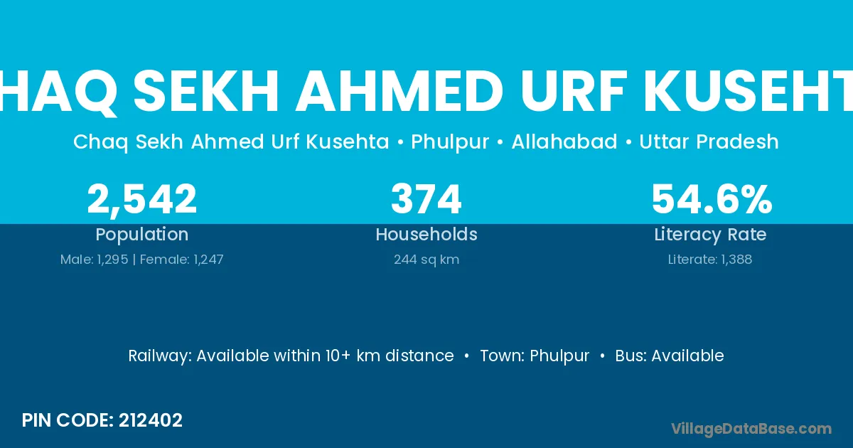 Chaq Sekh Ahmed Urf Kusehta village has a total population of 2,542 people, of which 1,295 are males and 1,247 are females.