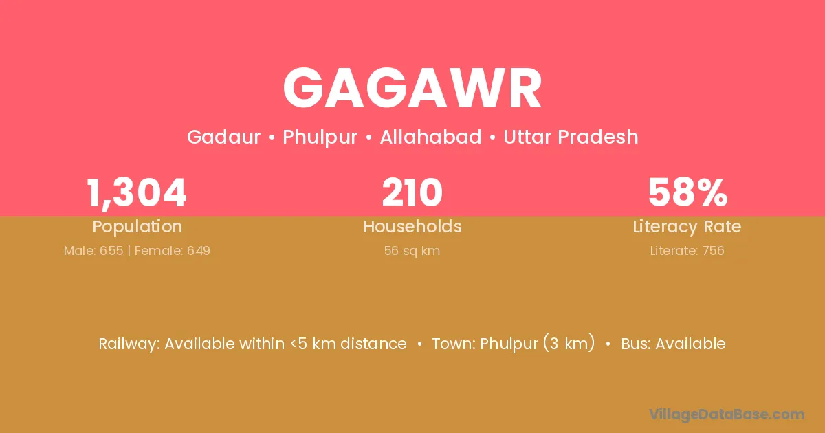 Phulpur (3 km) is the nearest town to Gagawr village for major economic activities and is located approximately 3 km away.