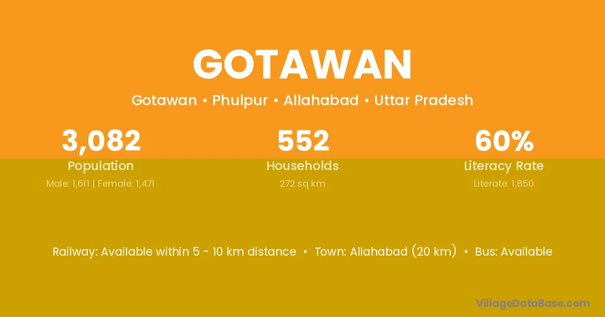Allahabad (20 km) is the nearest town to Gotawan village for major economic activities and is located approximately 20 km away.