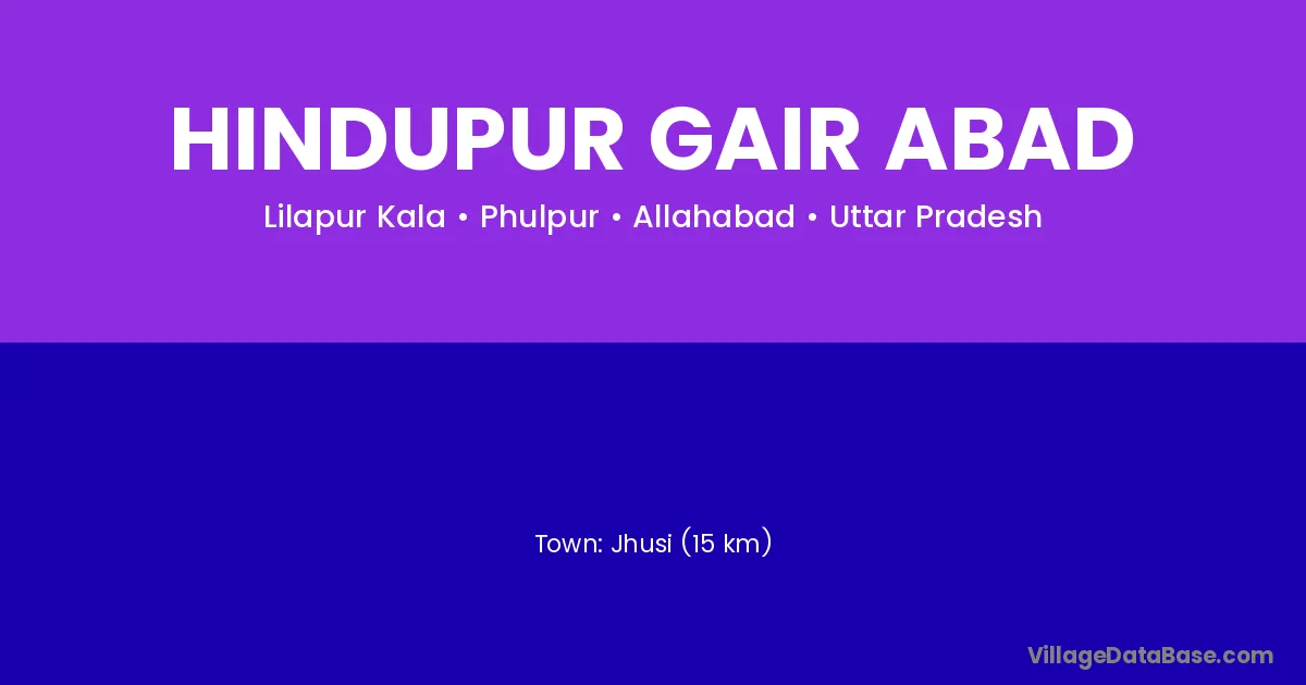 Jhusi (15 km) is the nearest town to Hindupur Gair Abad village for major economic activities and is located approximately 15 km away.