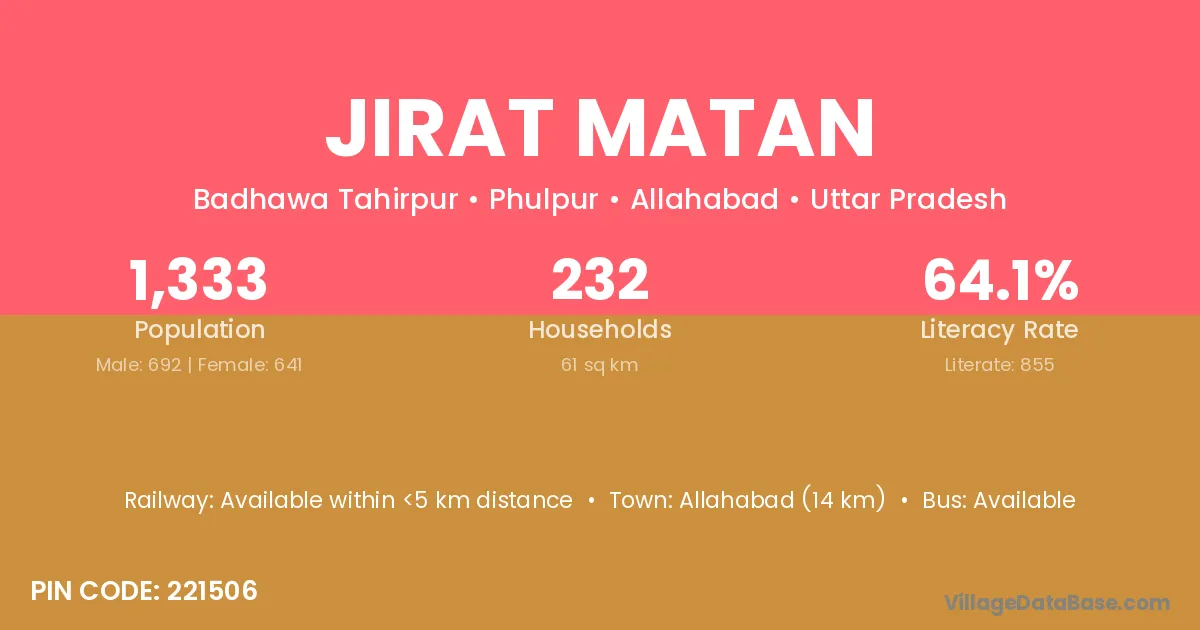 Allahabad (14 km) is the nearest town to Jirat Matan village for major economic activities and is located approximately 14 km away.