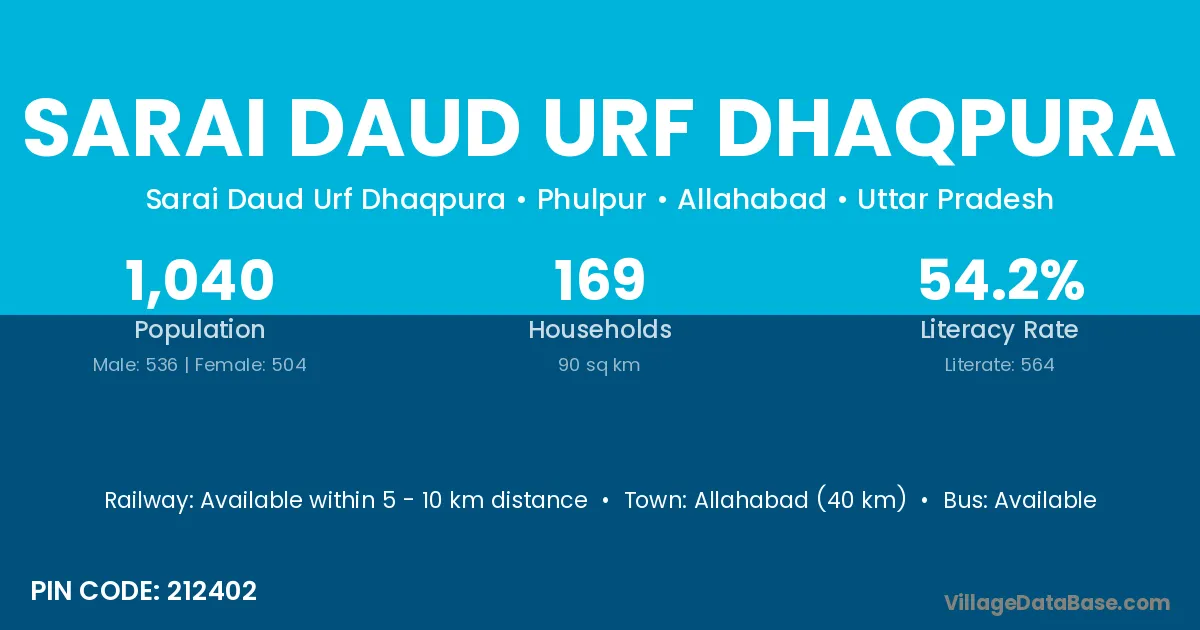 Allahabad (40 km) is the nearest town to Sarai Daud Urf Dhaqpura village for major economic activities and is located approximately 40 km away.