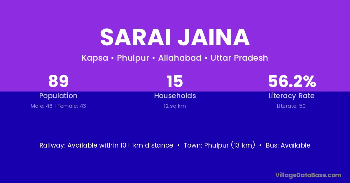 Phulpur (13 km) is the nearest town to Sarai Jaina village for major economic activities and is located approximately 13 km away.