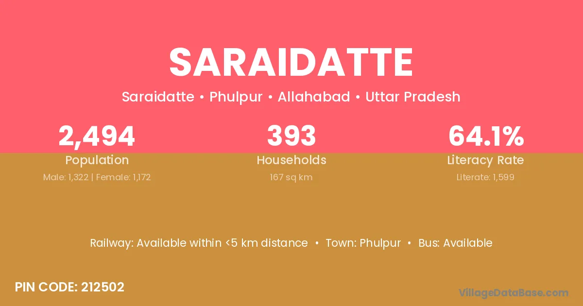 Phulpur is the nearest town to Saraidatte village for major economic activities