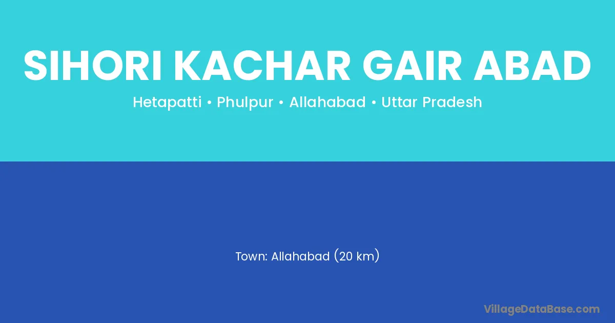 Allahabad (20 km) is the nearest town to Sihori Kachar Gair Abad village for major economic activities and is located approximately 20 km away.