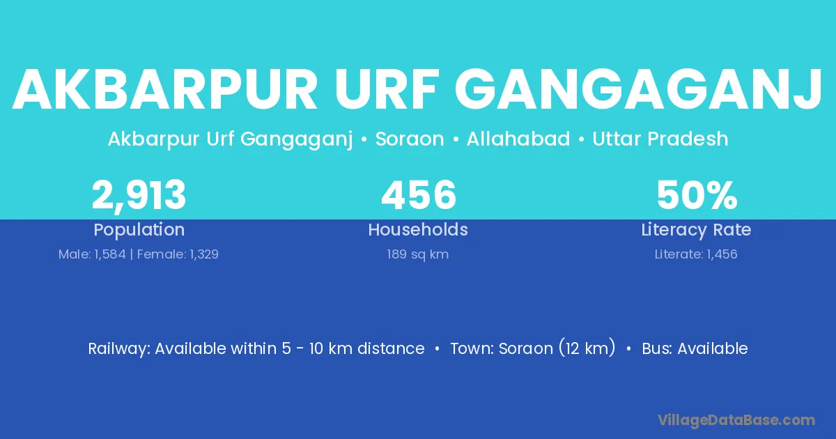 Soraon (12 km) is the nearest town to Akbarpur Urf Gangaganj village for major economic activities and is located approximately 12 km away.