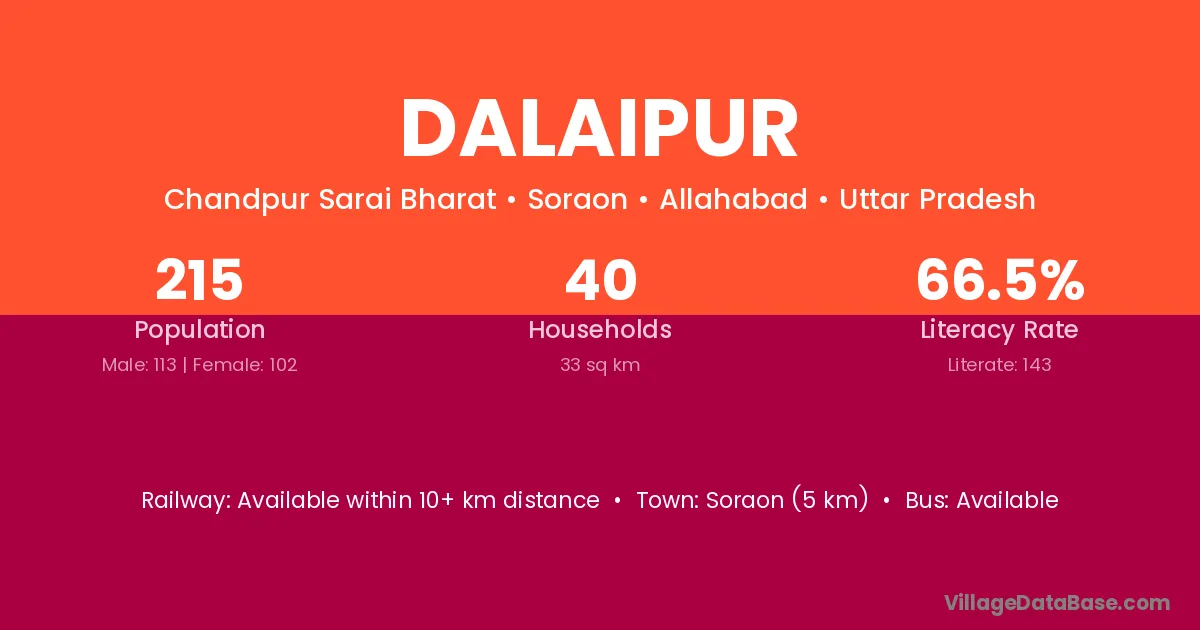 Soraon (5 km) is the nearest town to Dalaipur village for major economic activities and is located approximately 5 km away.