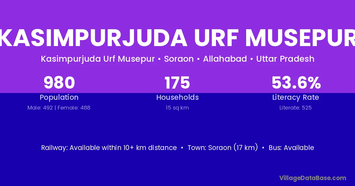 Kasimpurjuda Urf Musepur village has a total population of 980 people, of which 492 are males and 488 are females.