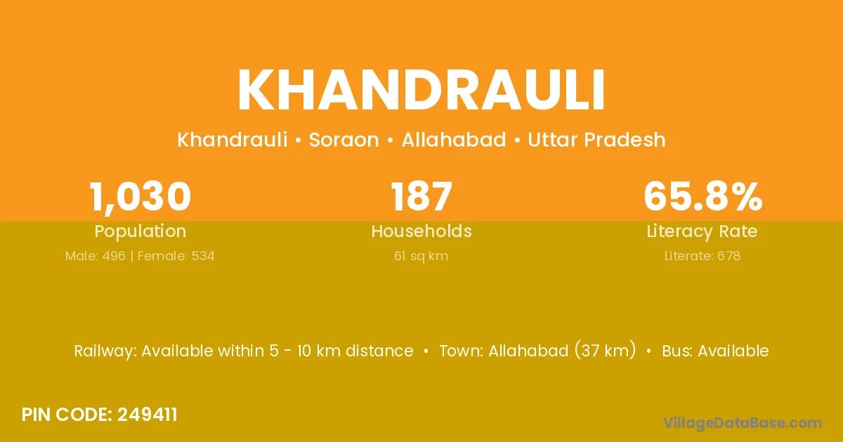 Allahabad (37 km) is the nearest town to Khandrauli village for major economic activities and is located approximately 37 km away.