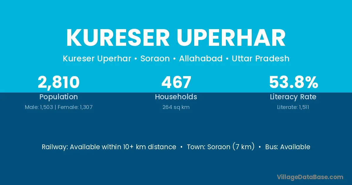 Soraon (7 km) is the nearest town to Kureser Uperhar village for major economic activities and is located approximately 7 km away.