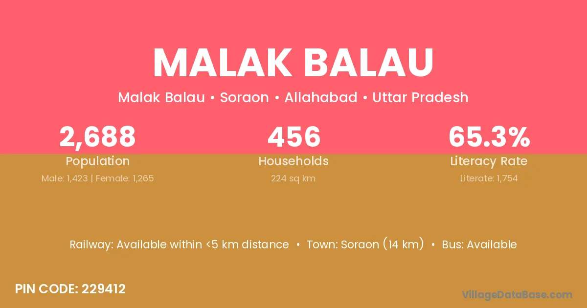 Malak Balau village is located in the Soraon Tehsil of the Allahabad district in Uttar Pradesh .