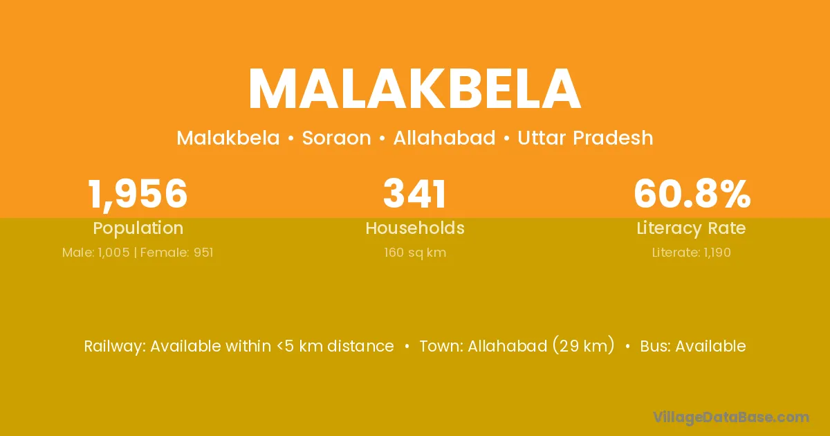 Allahabad (29 km) is the nearest town to Malakbela village for major economic activities and is located approximately 29 km away.