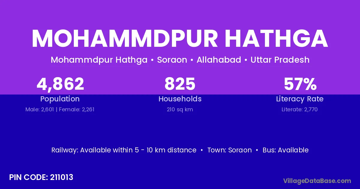 Mohammdpur Hathga village is located in the Soraon Tehsil of the Allahabad district in Uttar Pradesh .